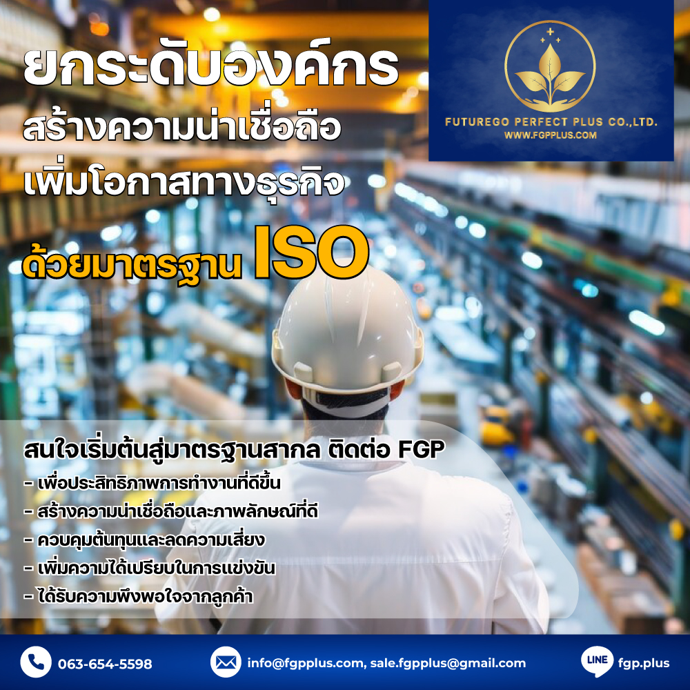 บริการของเรา ทีมผู้เชี่ยวชาญของ FGP พร้อมให้คำแนะนำและสนับสนุนในทุกขั้นตอน เพื่อให้ท่านสามารถปฏิบัติตามมาตรฐานสากลได้อย่างมั่นใจ เพิ่มประสิทธิภาพพร้อมกับจุดแข็งในการดำเนินธุรกิจ บริการที่ปรึกษาและฝึกอบรม ISO ของเราถูกออกแบบมาช่วยเพิ่มทักษะและพัฒนาศักยภาพของบุคลากร ท่านสามารถมั่นใจในคุณภาพและความเป็นมืออาชีพของทีมผู้เชี่ยวชาญของเราได้